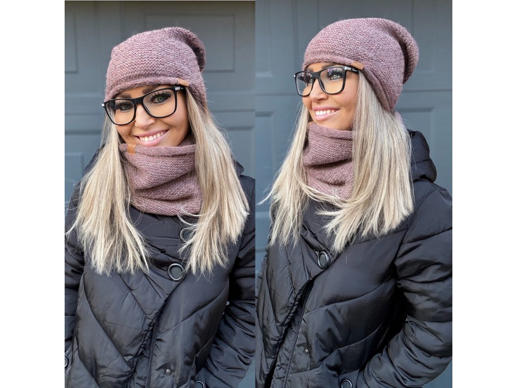 Tento pletený set tvoří měkoučká čepice a hřejivý nákrčník ve stejném odstínu.